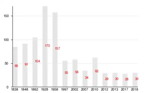 | 1838 | 1848 | 1862 | 1997 | 2006[20] | 2007[21] | 2010[22] |