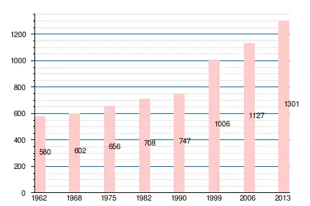 | 1962 | 1968 | 1975 | 1982 | 1990 | 1999 | 2006 | 2008 | 2011 | 2012 | 2013 |