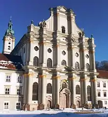 Монастырь в стиле барокко Фюрстенфельд (Fürstenfeld). Художник: Антонио Вискарди (Antonio Viscardi)
