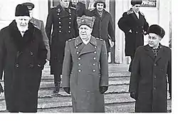 ![]() М.П.Родионов, Г.К.Жуков и Е.Е.Фёдоров посещают Первую в мире АЭС. Обнинск 1967 | |