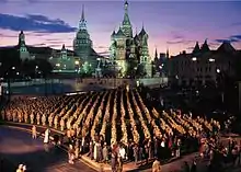 Krieg und Frieden («Война и мир») 1994: два настоящих танка разорвали слово «Война».[21]