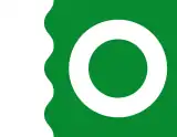 Флаг: на прямоугольном зелёном полотнище белый круг и белая волнистая часть у древка. Соотношение ширины и длины флага 7:9, нормальный размер 105×135 см[2].