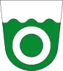 Герб: на зелёном щите серебряный круг и серебряный волнистый оголовок с тремя зелёными гребнями волны.