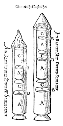 Конрад Хаас прибыл в Германштадт в 1551 году в составе армии короля Фердинанда I в качестве специалиста по огнестрельному оружию. В городе он был назначен ответственным за военный арсенал. В 1556 году Хаас издал книгу (хранится в городском архиве города Сибиу) о своей более чем 25-летней деятельности по созданию ракетной техники. Здесь на 282 страницах описываются две функции ракеты – как носителя фейерверка и как оружия. Хаас подробно описывает технические детали строительства ракет, их различные типы: многоступенчатые, параллельно-связанные. В книге представлена также идея современного космического корабля. Основное внимание уделяется применению двигательного топлива в многоступенчатых ракетах. Рассматриваются различные композиции жидкого топлива. Даются описания дельтовидных стабилизаторов и колоколообразного сопла.