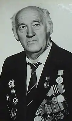 Во время войны служил в разведроте 276-го пехотного полка 77-й стрелковой дивизии 55-й армии, участвовал в боях, был контужен. Награждён орденами Отечественной войны I и II степеней (06.04.1985[1]), орденом Красной Звезды (19.05.1945)[2], несколькими боевыми (Медаль «За боевые заслуги» (30.04.1954), Медаль «За отвагу» (09.01.1945), Медаль «За победу над Германией в Великой Отечественной войне 1941—1945 гг.» (09.05.1945)) и юбилейными медалями.