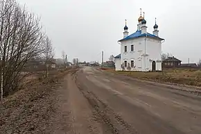 ![]() Въезд в село со стороны храма Казанской иконы Божией Матери | |