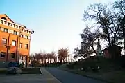Слева — второй корпус с панорамой «Волочаевская битва»