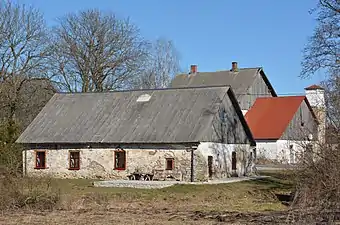 Продолговатую площадку перед главным зданием с одной стороны окружают амбар и сушильня, с другой стороны — конюшня и дом управляющего. Бо́льшая часть хозяйственных построек — хлев, сарай для инструментов, дом для работников, водочная фабрика и пр. — расположены к югу от главного здания и небольшого парка. Ещё южнее, возле дороги в Куйметса, находится ветряная мельница в голландском стиле[1].