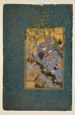 Самым прославленным произведением Хабибуллы вне сомнения является миниатюра к мистической поэме Фаридаддина Аттара «Мантик аль-Таир» (Беседы птиц). Манускрипт появился за сто лет до того, как попал в библиотеку Аббаса I . Он был создан в 1486-7 годах по заказу тимуридского правителя Хусейна Байкара. В нём были четыре миниатюры, созданные во времена правления тимуридов. Шах Аббас I счел нужным добавить ещё одну — созданную Хабибуллой. Это удивительно тонкое произведение, полное природной тайны, с великолепно выписанными «портретами» птиц, которые в данном случае символизируют души. Миниатюра близка по стилю к остальным четырём, созданным в эпоху Хусейна Байкара. Из общего стиля выпадает только фигура мужчины с ружьем, о котором в поэме Аттара не говорится ни слова. Вероятно, это лучшая иллюстрация к его поэме.