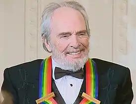 ![]() Мерл Хаггард в Белом Доме на церемонии награждения Kennedy Center Honors «за его выдающийся вклад в американскую культуру» (4 декабря 2010)[2] | |