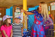 ![]() "Встреча с читателями в летнем лагере "Папараць-кветка" | ![]() "Встреча с читателями в летнем лагере "Папараць-кветка" | ![]() "Встреча с читателями в летнем лагере "Папараць-кветка" |