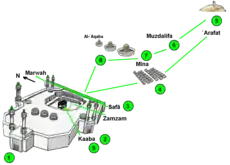 - Сай — семикратный бег между холмами Сафа и Марва.