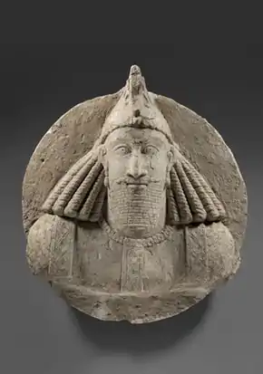 ![]() Статуя сасанидского дворянина из Хаджиабада, Иранский национальный музей. | |