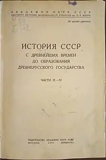 - Как ни странно, она не была свойственна ни дореволюционному, ни довоенному советскому дискурсу. См. Толочко А. П. Очерки начальной Руси. К.— СПб., 2015. — С. 116—117.