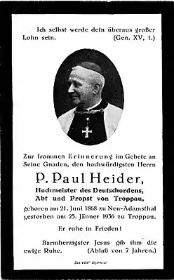 Пауль Хайдер (нем. Paul Heider; 21 июня 1868, Адамов близ Брно, Богемия — 25 января 1936, Опава, Чехословакия) — аббат, 60-й Гроссмейстер Тевтонского ордена с 1933 до 1936 года.