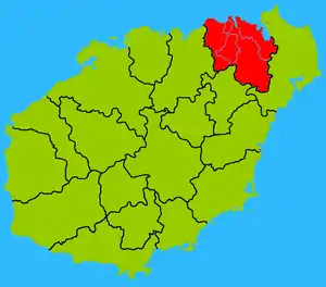 | Район | Цюншань | 琼山区 | Qióngshān qū | ||
