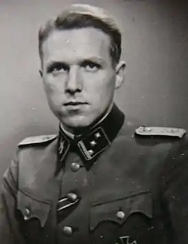 Был офицером СС, носил звание оберштурмфюрера[3].