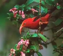 ![]() Чёрно-алая гавайская цветочница в Хакалау | |