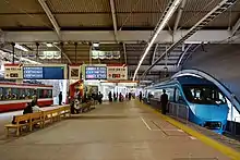 На станции одна платформа островного типа, а также две боковые платформы и всего 4 пути. Перед станцией находится автобусный терминал, в здании станции расположены туристический информационный центр и так же несколько магазинов.