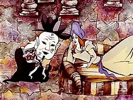- В отличие от оригинала, в мультфильме визирь избегает превращения в аиста.