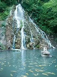 - Красивый водопад и горная форель