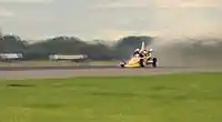 В соответствии с некоторыми источниками[11], он не пытался побить Британский рекорд скорости на суше, однако эти заявления, сделанные владельцем 'Event Fire Services' которая была нанята для обеспечения безопасности, не в полной мере вызывают доверие[12]. В момент аварии он двигался со скоростью 464 км/ч (288 миль/ч). Полиция Северного Йоркшира сообщила, что они «получили сообщение от пожарной службы, что мужчина зажат в перевёрнутой гоночной машине, которая ехала по аэродрому»[13] Он был эвакуирован на вертолёте в госпиталь Лидса, где был обследован специалистами неврологического отделения. Врачи характеризовали его состояние, как «серьёзное, но стабильное»[14].