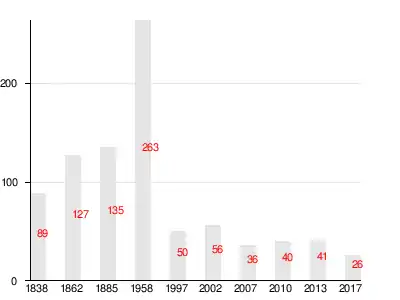 | 1838 | 1862 | 1885 | 1997 | 2007[23] | 2010[24] | 2013[25] |