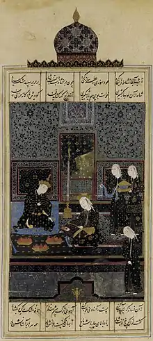 After the customary long introductory sections, the poet gives an account of the birth of Bahrām, the often-told story of his upbringing at the court of the Arab king Noʿmān (here, as often, mislocated in the Yemen instead of al-Ḥira) and the construction of Noʿmān’s fabled palace, Ḵᵛarnaq. Reared in the desert, Bahrām becomes a formidable huntsman. Wandering through the palace, Bahrām discovers a locked room containing the portraits of seven princesses, one from each of the seven climes, with whom he immediately falls in love.