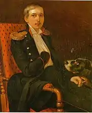 Портрет Михаила Ивановича Ханенко с собакой работы П. Захарова-Чеченеца, 1841 г.