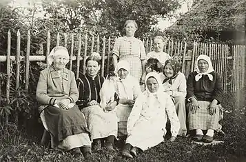 Женщины деревни Ханике, первая слева — исполнительница ижорских народных песен Мария Вахтер. 1939 г.