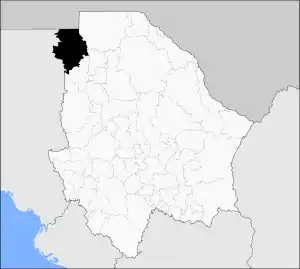 Площадь муниципалитета равна 7413 км², что составляет 3 % от общей площади штата[3], а наивысшая точка — 2190 метров, расположена в поселении Лос-Асулес[1].