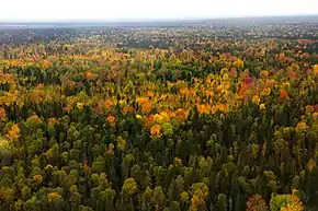 Флора Югры насчитывает свыше 800 видов высших растений[18]. Территорию Югры относят к двум ботанико-географическим областям: Уральской горной и Западно-Сибирской равнинной. Основная часть расположена в пределах Западно-Сибирской равнинной ботанико-географической области, для которой характерно отчётливое зональное деление растительности. В пределах округа выделяются подзоны северной, средней и южной тайги, но практически вся территория округа расположена в пределах одной природной зоны — таёжных лесов. Большую часть территории занимает сильно заболоченная тайга. В северных районах на состав растительности большое влияние оказывает вечная мерзлота.