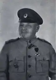 За то, что, находясь с полком в авангарде дивизии 13-го августа 1914 года и ведя наступление против подавляющих сил противника, под сильным и действительным артиллерийским и ружейным огнем, несмотря на огромную убыль среди офицеров и нижних чинов в составе более 50%, примером отличного мужества и твердой воли, воодушевив части полка к энергичному наступлению, заставил противника отступить от гор. Буска с большими потерями, что предоставило нашим войскам господство на р. Буге[8].