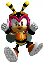 | Пчела Чарми (яп. チャーミー・ビー Тя:ми: Би:) (англ. Charmy Bee) | Knuckles’ Chaotix (1995) | Пчела | 6 лет[5]; 16 лет (в Knuckles’ Chaotix); 7 лет (комиксы Арчи) | Мужской[пр. 2] | 70 см[5] | 10 кг[5] | |