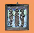 Священномученики Иоанн Воин, Харалампий и Вонифатий. XIX век. Литая икона