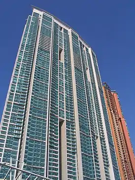 Харборсайд (The Harbourside, 君臨天下) — 73-этажный гонконгский небоскрёб, по состоянию на 2013 год являлся 15-м по высоте зданием города. Расположен в округе Яучиммон (входит в состав комплекса Юнион-сквер). Построен в 2003 году в стиле постмодернизма, считается одним из самых широких небоскрёбов в мире. Фактически является тремя башнями, соединёнными между собой в основании, середине и у вершины (для облегчения напряжения, создаваемого силой ветра, в фасаде имеются шесть больших промежутков). Имеет 864 парковочных места. Девелоперами проекта выступают компании Hang Lung Group и MTR Corporation[1][2][3].