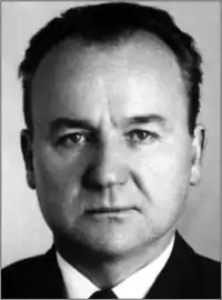 Михаил Аверкиевич Харламов (26 октября (8 ноября) 1913 года, г. Минск, Российская империя, — 16 ноября 1990 года, г. Москва, РСФСР, СССР) — советский государственный и партийный деятель, дипломат, председатель Государственного комитета Совета Министров СССР (Комитета при СМ СССР) по телевидению и радиовещанию (1962—64 гг.).