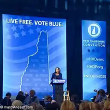 19 августа 2020 года кандидатура Харрис была утверждена на конвенте Демократической партии в Уилмингтоне (Делавэр), и она стала первой чернокожей женщиной и первым политиком азиатского происхождения, официально номинированным на пост вице-президента США одной из основных партий[38].