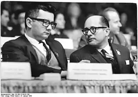 ![]() Армандо Харт (слева) с генсеком КП Колумбии Хильберто Виейрой Уайтом на VI съезде СЕПГ | |
