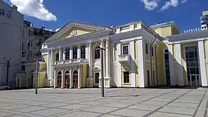 - После этого Филармония была переведена в помещение бывшего оперного театра, который является памятником архитектуры. Здесь в 1896 году Альфред Федецкий провёл первый киносеанс на Украине, а в 1929 году в эфир вышла первая украинская радиостанция.