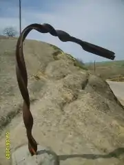 Скрученная рельса Ал-Клычём перед расстрелом, Буглен (Дагестан).