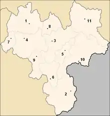 Административно область делится на 11 общин: