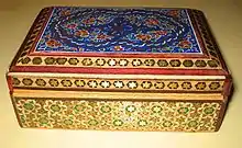 Хатам (перс. خاتمکاری , Khatam-kari или (перс. خاتمبندی, khatam-bandi) — древняя персидская техника инкрустации по дереву. Особый вид мозаики, где сложный геометрический узор, в основе которого треугольники, создается путем приклеивания к деревянной или иной поверхности изделия тонких пластин, изготовленных из дерева, кости и металла. Таким способом украшают практически любые предметы — от дверей и рам до шкатулок и шариковых ручек. Золото, серебро, латунь, алюминий, медь и витая металлическая нить являются сопутствующими материалами, используемыми в этом виде искусства.