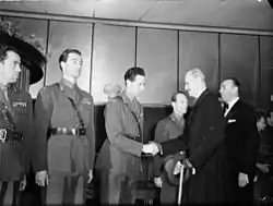 ![]() Кнут Хаукелид (крайний слева) на встрече с королём Хоконом VII | |