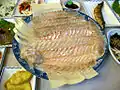- сэнъсонхве (생선회, также хвальохве, 활어회; тонконарезанная рыба или морепродукты, аналогичное японское блюдо — сасими);