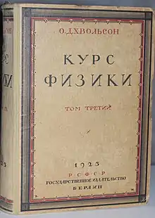 - Курс физики, (т. 1—5, Берлин, 1923 (т. 1—3, 5 изд.; т. 4, 3 изд.); т. доп., ч. 1—2 (М.—Л., 1926).