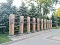 Барельефы на стелах в Парке Победы города Задонска, в том числе барельеф Хвостова Павла Никитовича.