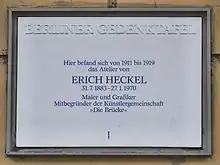 Мемориальная доска Эриху Хеккелю в Берлине