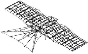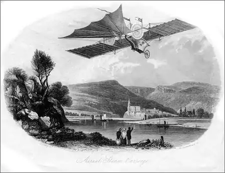Летательный аппарат («Паровой воздушный экипаж»), предложенный Уильямом Хенсоном, представлял собой самолёт. Конструкция крыла содержала элементы (нервюры, лонжероны, стойки с расчалками), нашедшие впоследствии применение в авиации [5]. Нервюры крыла имели различную кривизну нижнего и верхнего обводов, а обшивка была двухсторонней, то есть, крыло, как и крыло современных самолётов, имело толщину. Лонжероны (продольные балки) крыла для облегчения конструкции предусматривались пустотелыми. Крыло крепилось сверху к корпусу, в котором располагались: двигатель, приводящий во вращение два толкающих воздушных винта, экипаж и пассажиры[6].