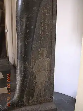 ![]() Изображение принцессы Хенутмиры у ног статуи царицы Туи. Ватикан | ||||||||||||||